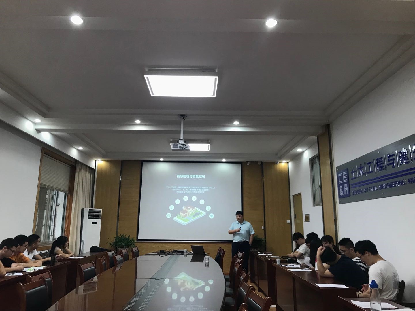 孟教授在会议上对于江主任的到来表示了热烈欢迎,江主任给大家带来了生动的学术报告,报告中介绍了数字技术应用研究、数字中台系统研究、智能建造平台研究。报告内容主要是通过中信设计院设计的案例,如光谷国际网球中心等,来介绍BIM技术应用点。并且基于目前的数字化建筑的发展现状,展望了BIM技术在未来建筑业的应用前景,让师生们了解了行业前沿的研究内容。