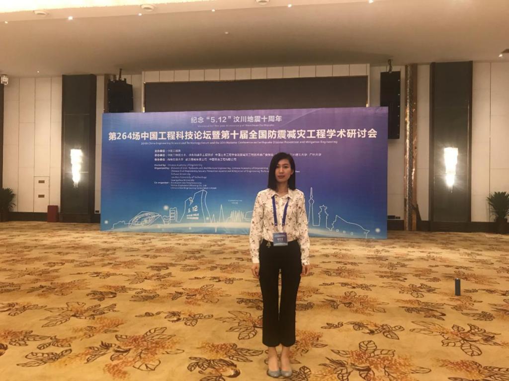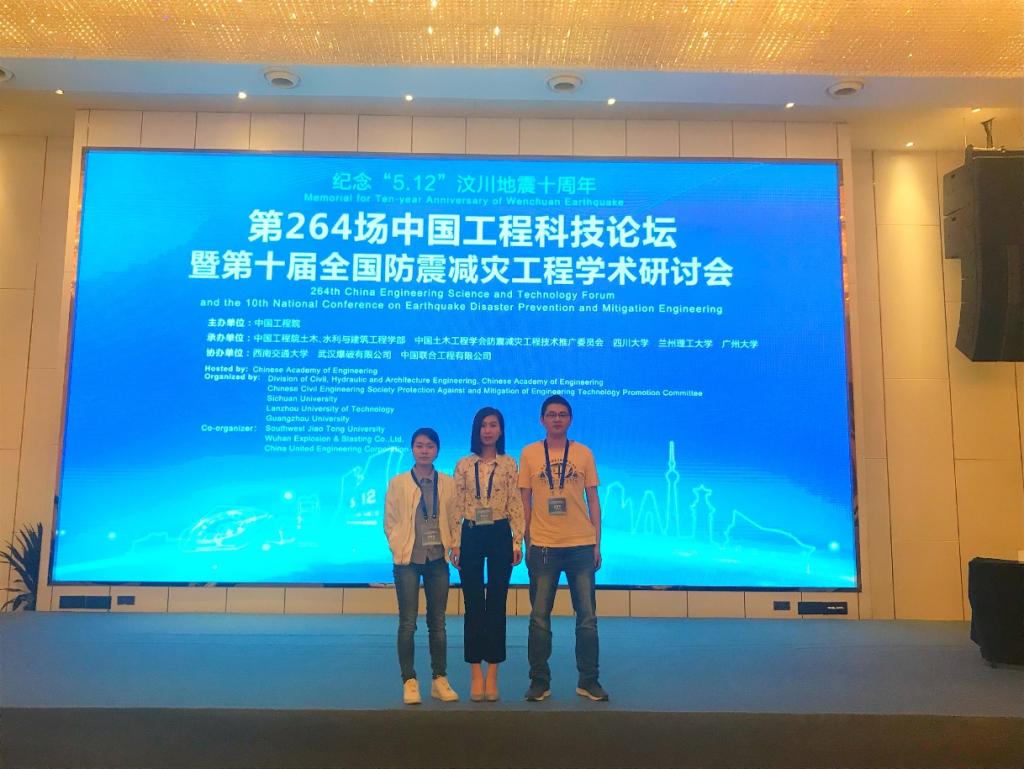 教授与2016级硕士研究生何宛澄和肖诗烨在第十届全国防震减灾工程学术研讨会现场