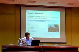 Anand Sreeram教授在报告中指出,长期以来,道路基础设施行业一直面临着如何优化材料资源利用的重大挑战,特别是随着道路管理逐渐向维护为主转变的背景下,如何实现材料资源的优化利用及开展高价值应用成为当前的研究热点。他介绍了在道路基础设施领域实现材料循环最大化的全面愿景,并强调未来的发展需要更高的资源利用效率,以及将回收材料重新用于其最高价值的应用。