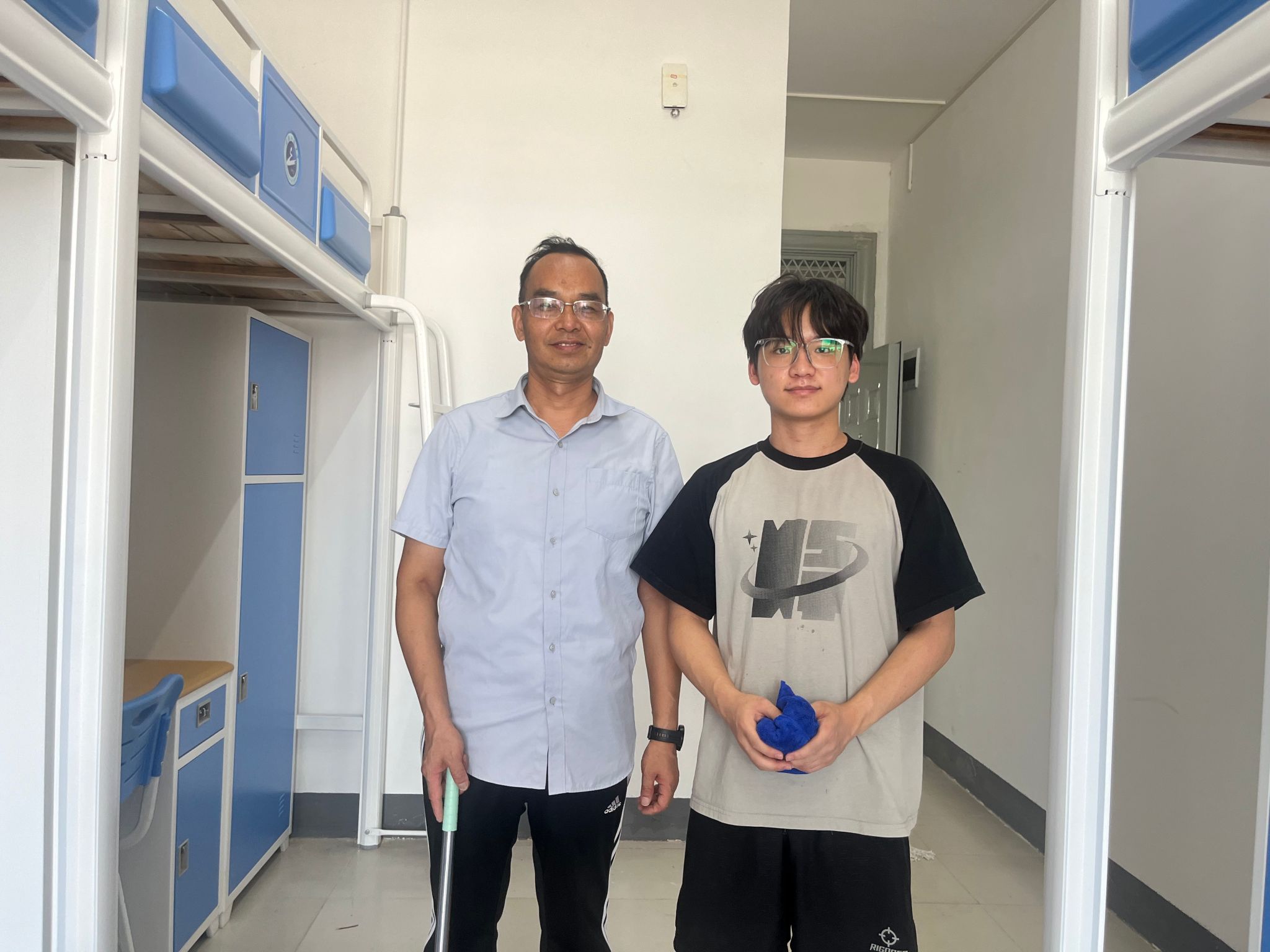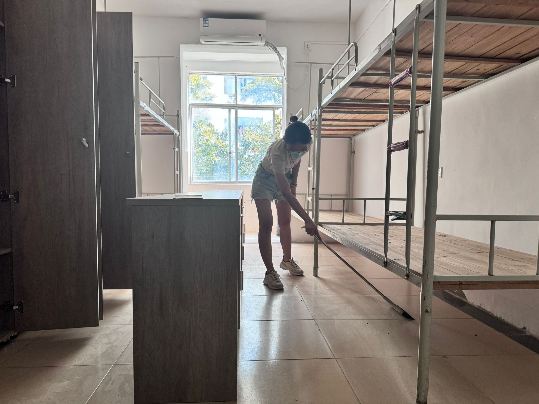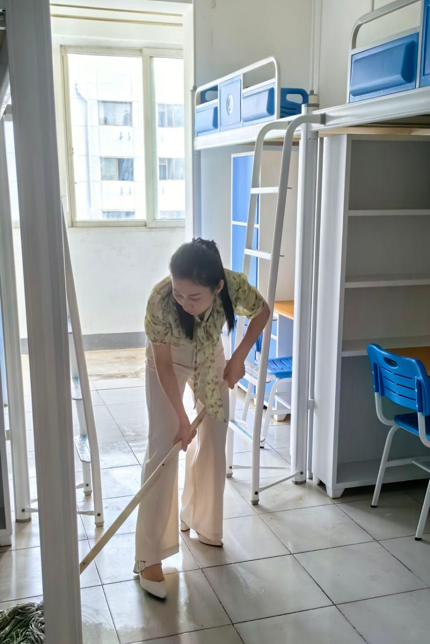全体师生党员自带清洁工具,逐一对新生宿舍地面、桌面、阳台进行卫生清洁,不留卫生死角。做好清洁卫生同时,师生党员对宿舍桌椅、衣柜、床板、门窗等硬件设施进行检查,对存在问题的宿舍及时报修,共同为新生提供一个干净、整洁的住宿环境。