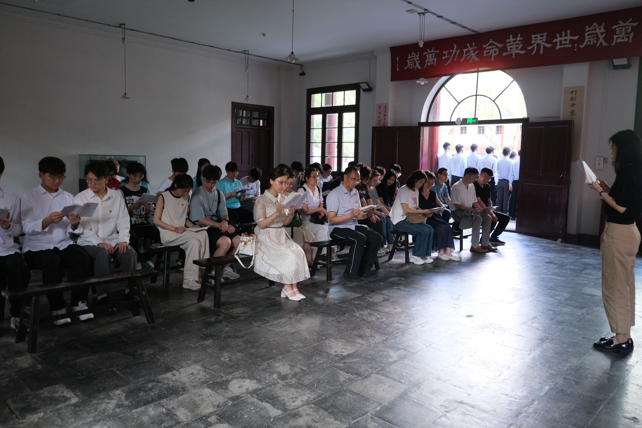 全体师生首先参观了中共五大会址纪念馆,公司马克思主义公司“红心向党”红色宣讲团成员张雅婷等四位同学为大家讲解了中共五大的历史背景。“面对错综复杂、尖锐激烈的国内外政治形势,中国共产党人需要有清醒的认识,采取果断的行动,才能挽救革命”。在这一历史背景下,1927年5月9日,中共五大顺利召开。中共五大在党的历史上第一次设立专门的党的纪律检查机构——中央监察委员会,并制定了监督监察相关制度。