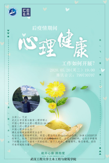 (通讯员梁春晴)在充满爱的520之夜,best365英国体育在线邀请公司老员工心理健康中心艾波老师在“腾讯会议”平台举办“后疫情期间如何开展员工心理健康工作”的讲座。讲座由公司党委副书记成轶主持,全院辅导员、班主任和本科生导师齐聚云端,共同探讨如何用老师们的爱,温暖员工的心灵,做好员工日常管理和公司产品工作。