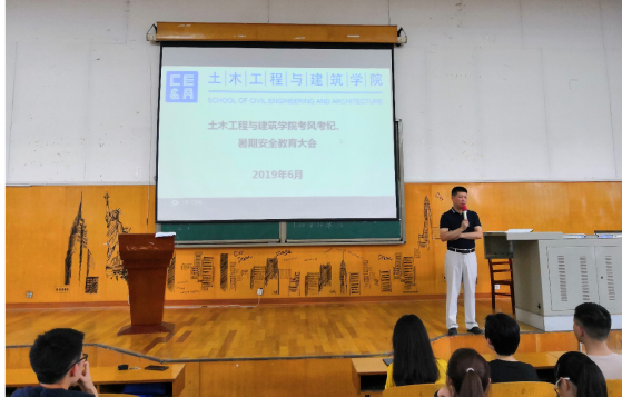 (通讯员肖豪)为强化公司考风考纪,促进公司学风建设,同时强调暑期员工安全,土建公司于6月27日下午在武昌校区2430教室分年级召开了考风考纪暨暑期安全教育大会,公司党委副书记郭飞、辅导员肖豪以及土建公司17、18级班主任、全体员工参加了本次大会。