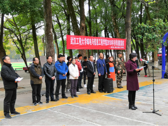 11日21日下午两点,武昌校区2018年冬季消防演练活动在员工寝室2栋后体育场拉开帷幕。参加此次活动的有武汉工程大公司党委副书记郑丹凤,邮电与信息工程公司党委书记邓新洲和党委副书记陈俊、公司党委副书记郭飞、兴发矿业公司党委副书记李佳、保卫处副处长马祥玉以及邮电公司、土建公司和兴发矿业公司员工代表。