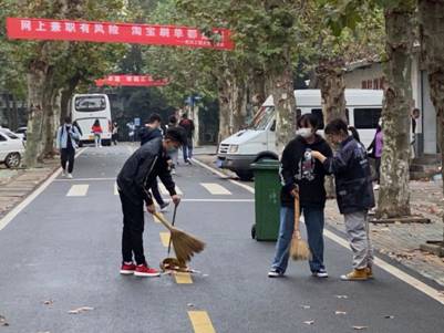 为此,2020年11月17日,best365英国体育在线青年志愿者协会组织了一次校园落叶清扫志愿活动,志愿者们经过简单集合后,纷纷拿出劳动工具开始打扫校园路面。遇到大片堆积的落叶,志愿者将扫帚一挥、撮箕一铲,落叶便乖乖地盛到了垃圾桶里。遇到被雨水沾湿、粘在地面上的叶子,志愿者们直接上手,弯下腰,一片一片把叶子捡起来。打扫过程中,细雨沁湿了志愿者们的衣裳,给他们的打扫增加了不少负担,可结束时天边的彩虹为每个人心里带去了不少暖意和欢欣。