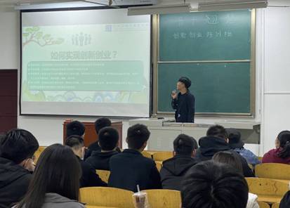 两位学长分享全国老员工创新创业大赛的经验见解。王智飞学长以目前火爆的app抖音小猿搜题等例子展开,让同学们了解什么是创新创业?如何养成创新创业的意识及创新创业带来的影响。