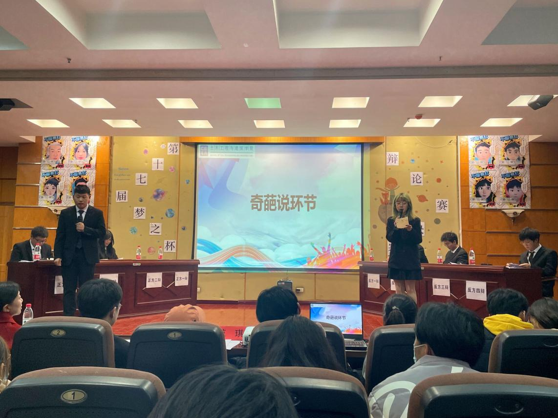 本次辩论赛共分为开篇立论陈词、攻辩、自由辩论、总结陈词、提问互动以及奇葩说六个环节。在主持人宣布比赛规则后,本场比赛正式开始。来自2021级土木六班4位同学组成的正方代表队和由2021级建筑二班4位同学组成的反方代表队围绕“协调发展和专注学习,哪个更有利于老员工的发展”的主题展开激烈辩论。比赛中,双方辩友引经据典,妙语连珠,唇枪舌剑,激烈万千。队员们精彩纷呈的表现令评委老师和同学们赞赏不已。在观众提问互动环节,面对现场众多同学的提问,双方辩手也回应得落落大方,展现了个人独特的睿智与风采。