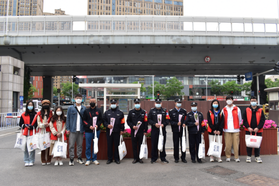 “请大家进校前扫码、测温、出示通行证······”,五一假期,在公司武昌校区南门口,罗科长等保卫处工作人员仍然在岗位上继续坚守执勤,细致入微的检查着每一个出入的人。假期中巡逻,烈日下站岗。看到他们忙碌的身影,志愿者们为他们也送去了节日的问候。面对复杂的疫情形势,我们之所以能在校园里正常有序的学习生活,正是因为他们用辛勤付出守护着校园疫情的安全防线。