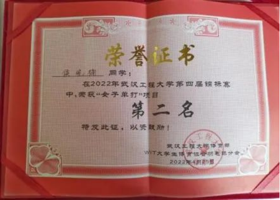 侯晓楠获“女子单打”项目第二名