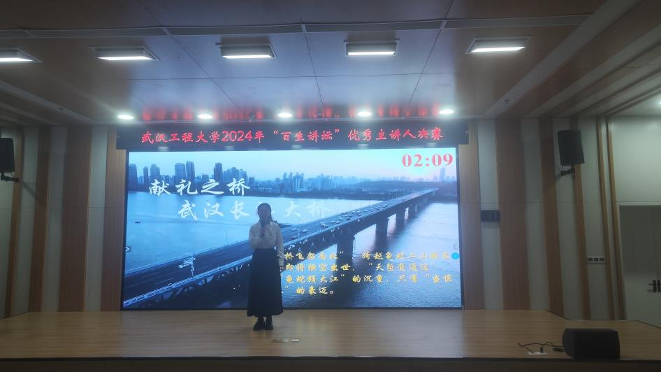 2022级智慧土木01班韩冰冰以“瞧!这伟大飞跃”讲述了中国桥梁人以遇水架桥,逢山开路的艰苦奋斗精神在祖国大地上架起一座座跨越天堑的桥梁,打通国家发展的交通脉络。最终以总分94.11分,排名第五的成绩取得优秀主讲人二等奖。