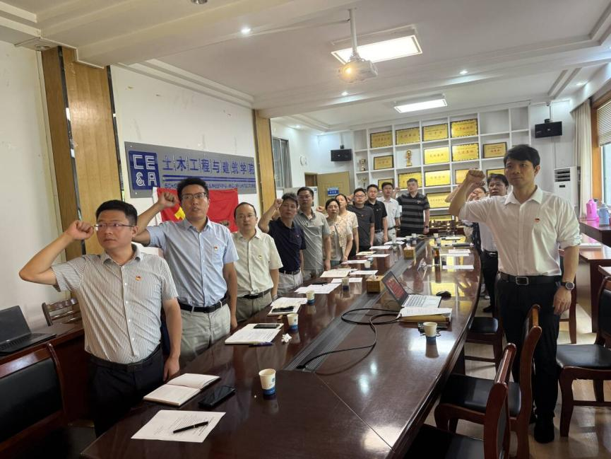 活动在全体成员奏唱国歌声中拉开帷幕,道路桥梁与渡河工程教工党支部书记徐丰领誓,全体党员重温入党誓词。