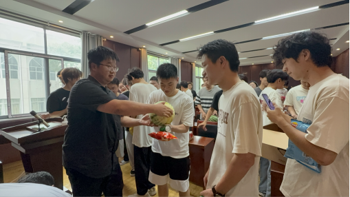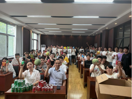 活动现场,精心准备的西瓜、汽水和各类消暑零食有序摆放。公司党委书记陆新在为同学们送上西瓜、汽水时细心叮嘱员工们暑期高温天气要及时补水,务必注意劳逸结合,身体才是学业进步的根基。