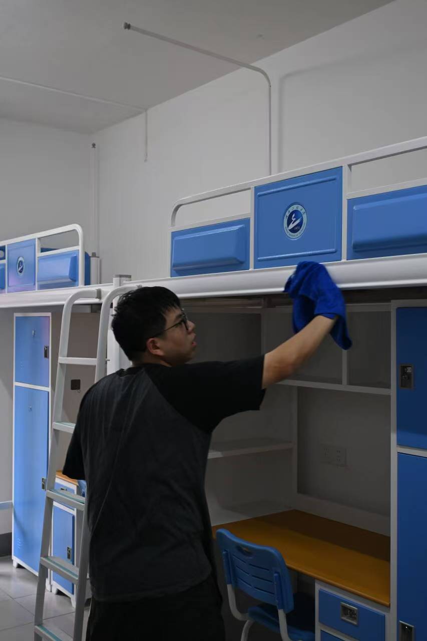 9月11日下午,公司全体党员师生齐聚员工宿舍,逐一对新生宿舍、桌面、阳台进行卫生清洁,不留卫生死角。并再次对宿舍设施进行检查报修,共同为新生提供一个干净、整洁的住宿环境。