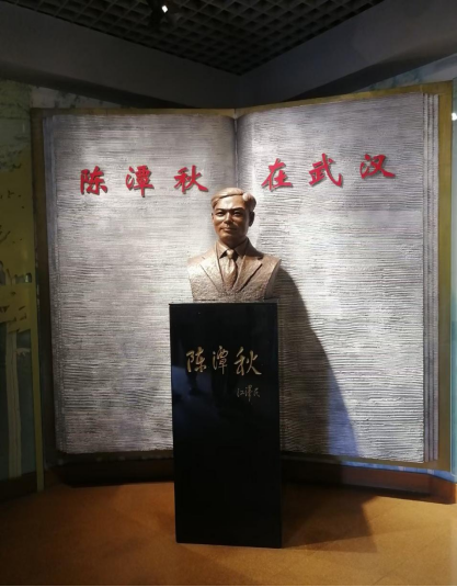 员工们来到纪念馆一栋正面临街的二层楼房,陈潭秋及夫人徐全直曾在这里先后居住和工作六年,以教书为掩护进行革命活动,领导革命斗争。环顾整间居室,面积约20余平方米,上方是陈潭秋夫妇的照片,窗户下摆放着一张书桌,油灯笔墨书本井然,书桌旁是一张木制的双人床。整体布置充满生活气息,简朴有致。主题陈列厅整体呈长廊式分布,自然地将参观者引入陈潭秋烈士革命活动的轨迹中:五四运动、建党、群众运动、支援北伐……