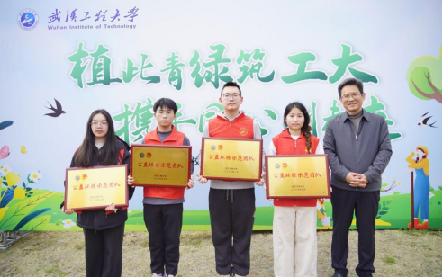 公司党委书记汪伟为公司花少绿行环保团队颁授“公益环保示范团队”奖牌,勉励同学们以他们为榜样,结合自身所学积极践行绿色发展理念,为美丽中国、美丽工大建设贡献智慧和力量。