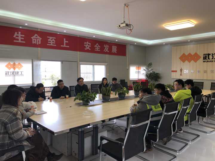 在现场座谈会上,湖北省医养康复中心(示范)项目部企业实习指导老师孙路、武汉光谷创新天地R1地块一标段项目部经理周崇新、项目总工陈志钊分别介绍了实习员工的实习情况和安排,以及每位员工的实习表现。武汉建工集团人力资源部经理邹进代表武汉建工对陈经理一行表示热烈欢迎,对集团高度重视员工实习工作给予了肯定,对公司参加实习生的工作态度和能力予以充分的认可和高度的评价。同时,邹经理也全面介绍了武汉建工的发展近况、人才战略、工作生活条件,指出欢迎公司优秀学子加入武汉建工集团的大家庭。