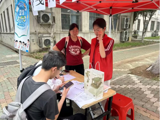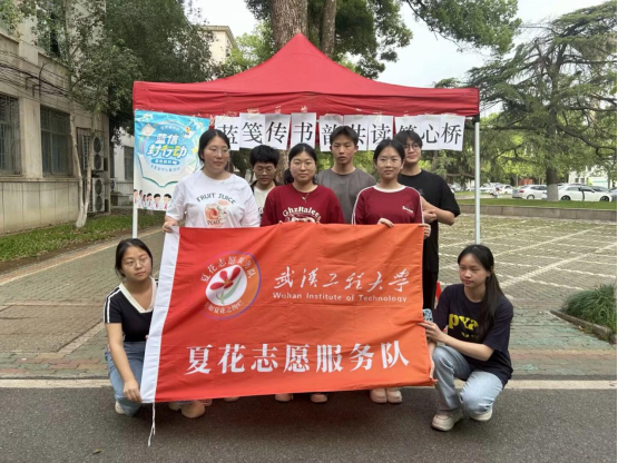 活动现场,夏花志愿服务队的志愿者们身着统一服装,热情地向来往师生介绍“蓝信封”公益项目的意义:通过一封封手写信件,关注乡村儿童的心理健康,用文字传递温暖与力量。参与活动的师生可在特制的蓝色信封上,写下自己推荐的书籍、书中最触动人心的段落、阅读感悟,以及对乡村孩子的鼓励与祝福。