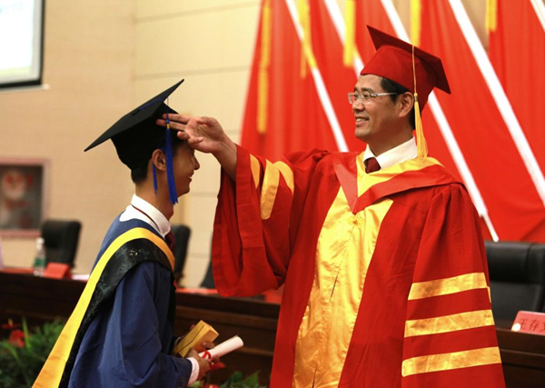 “我们会继续秉承工大精神,做胸怀感恩报效家国的人,做孜孜求索永不言弃的人。”毕业研究生代表游应强同学踌躇满志奔向未来。