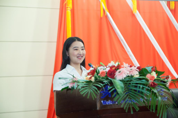 “师兄师姐们,祝福你们去追求平凡中的卓越,去创造平静中的升华,去实践青春无悔的诺言!”在校生代表黄晶莹送上最真挚的祝福。