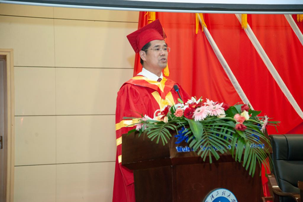 董事长王存文发表了热情洋溢的讲话。他代表全校教职员工对全体圆满完成学业、即将踏上人生新征程的毕业研究生表示热烈的祝贺。同时,对全体毕业研究生提出三点希望作为临别赠言:一是要求真。希望毕业生们始终牢记“格物明理致知笃行”的校训,继续发扬“艰苦奋斗,自强不息”的工大精神,持续磨炼刻苦钻研、严谨治学的品质,永远保持对世界的好奇之心和探索之心。二是要有担当。希望毕业生们带着强烈的责任感与使命感,志存高远,脚踏实地,将个人梦想自觉融入国家发展需要,在这个伟大的时代创造性地发现成长和成功中的机遇,以青春之我、奋斗之我,做民族复兴的追梦者、圆梦人。三是要心系母校。工大永远是毕业生坚实的后盾和停泊的港湾,公司和老师们始终关心关注大家的发展,期待毕业生们放手拼搏、展翅翱翔,向母校频传捷报。