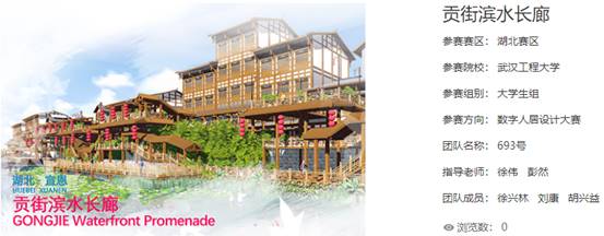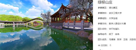 (通讯员 段丁)2019年10月31日讯,best365英国体育在线建筑与城乡规划系16级建筑学团队693号(队员:徐兴林,刘康,胡兴益,指导老师:徐伟,彭然)作品贡街滨水长廊获得2019全国3D大赛湖北赛区特等奖(排名第一),WIT先锋队(队员:冯清雄,王栋,戈劭凯,陈洋,指导老师:段丁,徐伟)作品绿柳山庄获湖北赛区二等奖。