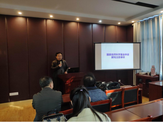 苗雨教授会上作了题为《国家自然科学基金申请经验交流》的报告,他对国家自然科学基金项目申报常见问题、关键科学问题、研究方案、可行性分析、研究方案、研究的特色与创新之处、经费预算等方面分别进行了点评,对国家基金项目申报成败的关键之处进行了特别说明,指出了国家基金项目申报中可能会存在的问题及相应对策。