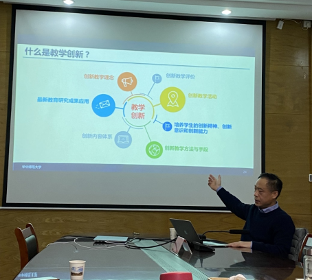 杨九民教授主要从教学创新大赛评审标准解读以及如何填写申报书、如何撰写创新成果报告、如何制作课堂实录视频、如何说课(教学创新设计汇报)等方面进行讲解,不仅帮助拟参加教学创新大赛的老师更好地理解大赛评审标准、准备参赛材料,同时为青年教师更好地组织教学活动、创新教学方法、提升教学水平提供了很好的指导。