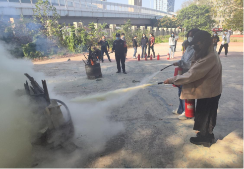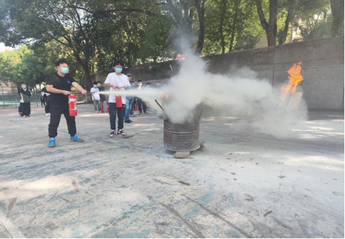 通过现场实际操作灭火器灭火,在场师生进一步熟悉了消防器材使用的要求,掌握基本的消防应急能力。