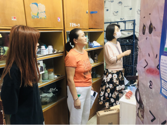 徐迪迪部长在2栋女生宿舍询问同学们近期的学习和生活状况,提醒大家要注意用电安全,对寝室出现的安全隐患问题提出整改要求,提醒大家出门前要注意断水断电、防火防盗,确保员工宿舍安全。现场徐迪迪部长对安全意识不强的员工和管理人员进行了安全教育。