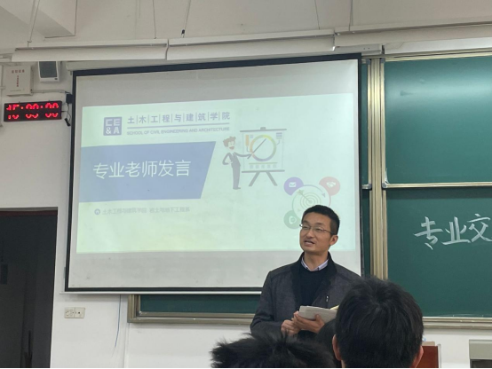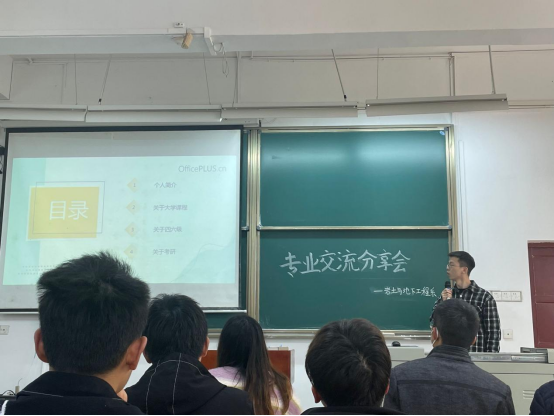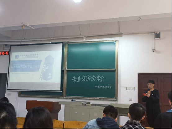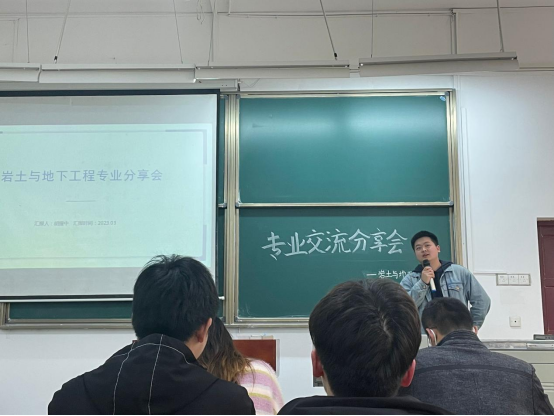 本次交流会由2021级辅导员夏添和员工徐子骁共同主持,活动伊始,主持人徐子骁介绍了举办本次岩土与地下工程专业交流分享会的意义和到场嘉宾。