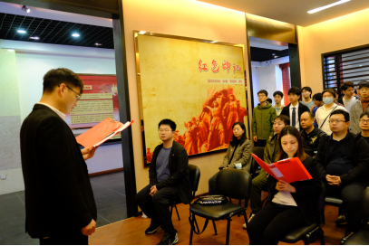 参观学习后,大家来到施洋烈士纪念碑前庄严肃立,通过默哀、敬献鲜花等方式,表达了对施洋烈士的崇高敬意和无限哀思。在革命烈士纪念碑下,公司党务干事张中强组织全体师生党员重温入党誓词,表达了永远跟党走,为党的事业奋斗终身的决心和信念。