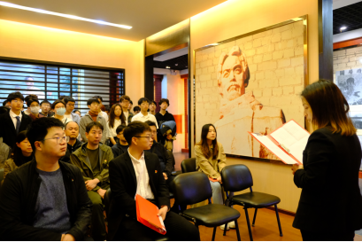 上午九点,师生代表满怀崇敬的心情,冒着小雨,走入这片神圣的革命基地。陵园内苍松翠柏,安静肃穆。在讲解员的带领下,师生党员首先参观了施洋烈士生平展厅,馆内的历史照片和陈列突出展现了施洋烈士短暂而辉煌的革命人生。