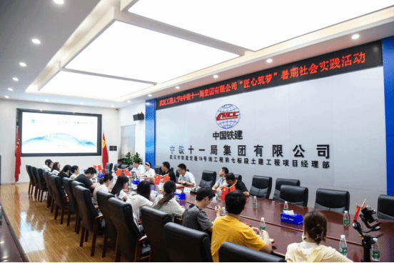 中铁十一局集团武汉花山车辆段项目部主要负责武汉轨道交通19号线花山车辆段位于花山大道、武黄城际铁路和武九铁路的西北区域。实践团在相关负责人的带领下深入项目一线,现场总工程师王吉财为同学们详细介绍了施工项目内容、施工大楼的结构和用处,通过亲身体验,同学们对施工现场有了更加深刻的认识。参观结束后,公司党委副书记成轶带领实践团与项目负责人、相关技术人员开展主题会谈。