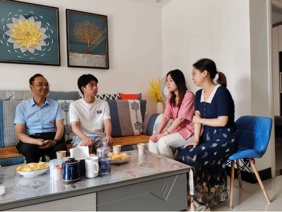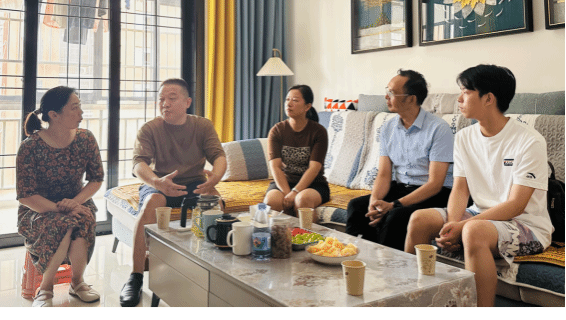 (通讯员:夏添)为更加全面地了解2023级新生,进一步畅通家校共育渠道, 公司党委书记陆新、公司党委副书记成轶、道桥专业老师黄敏和本科新生辅导员夏添一行于8月21日赴黄冈市黄梅县走访了2023级土木工程专业新生小陶的家庭,把新生入学教育提前“做到家”。