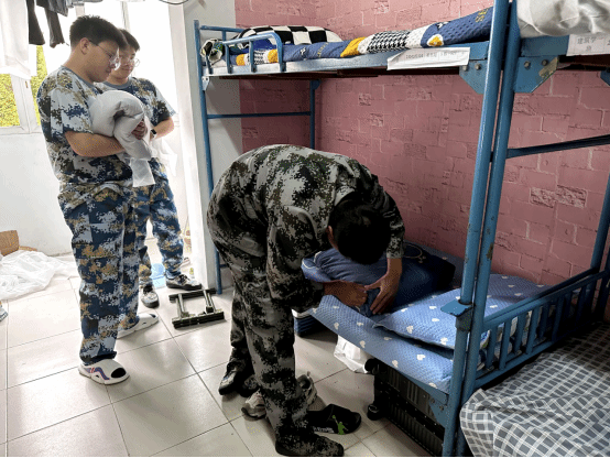 劳以养德,勤以修身。军训内务整理是军训的必修课之一,也是度过军训生活的基础,干净整洁的内务凸显出军训的严谨和庄重。教官们按军训内务规定,对新生寝室进行检查,并对生活用品的规范摆放,室内整体清洁的程度提出了严格要求。