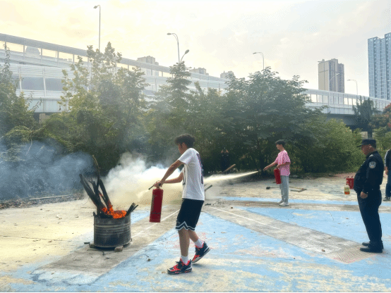 在了解各种消防设备的基本知识和使用方法后,公司保卫处设置了火源点,模拟真实的火灾情况。同学们积极踊跃、兴致高昂,按照示范动作认真使用灭火器材对现场设置的小型模拟火堆进行灭火实操演练。演练过程中,公司保卫处时刻关注同学们的操作技巧和反应速度,及时给予指导和纠正。通过多次的实操演练,同学们逐渐熟悉了灭火器的操作,增强了应对火灾紧急情况的能力。