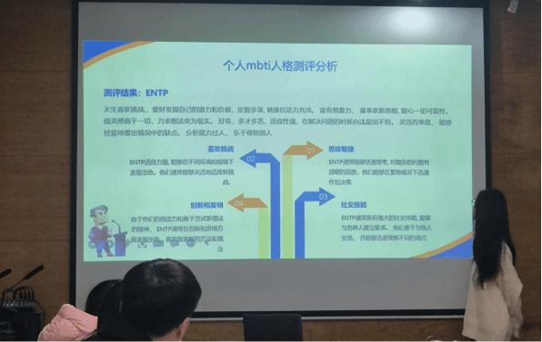 比赛伊始,夏添老师向参赛选手介绍了本次比赛的活动内容与规则,十六位选手按抽签顺序依次上台进行了汇报展示,并与评委老师进行互动问答,对自己的职业规划进行进一步阐述。赛中,成长赛道的同学从自身性格分析作为切入点进行介绍,展示了自己理想的职业规划以及为实现职业目标而设定为之努力的成长过程,涵盖大学每一学年的学习规划和毕业后五至十年的职业规划。就业赛道的选手充分凸显了自己的求职实战能力,将重心放在体现自身条件与岗位要求的适配度。评委老师结合每位选手的表现和存在的问题给予中肯的指导和建议,鼓励同学们在加强理论知识学习的同时,要聚焦中心,结合自己实际情况做好未来的职业规划,为将来就业做好准备。