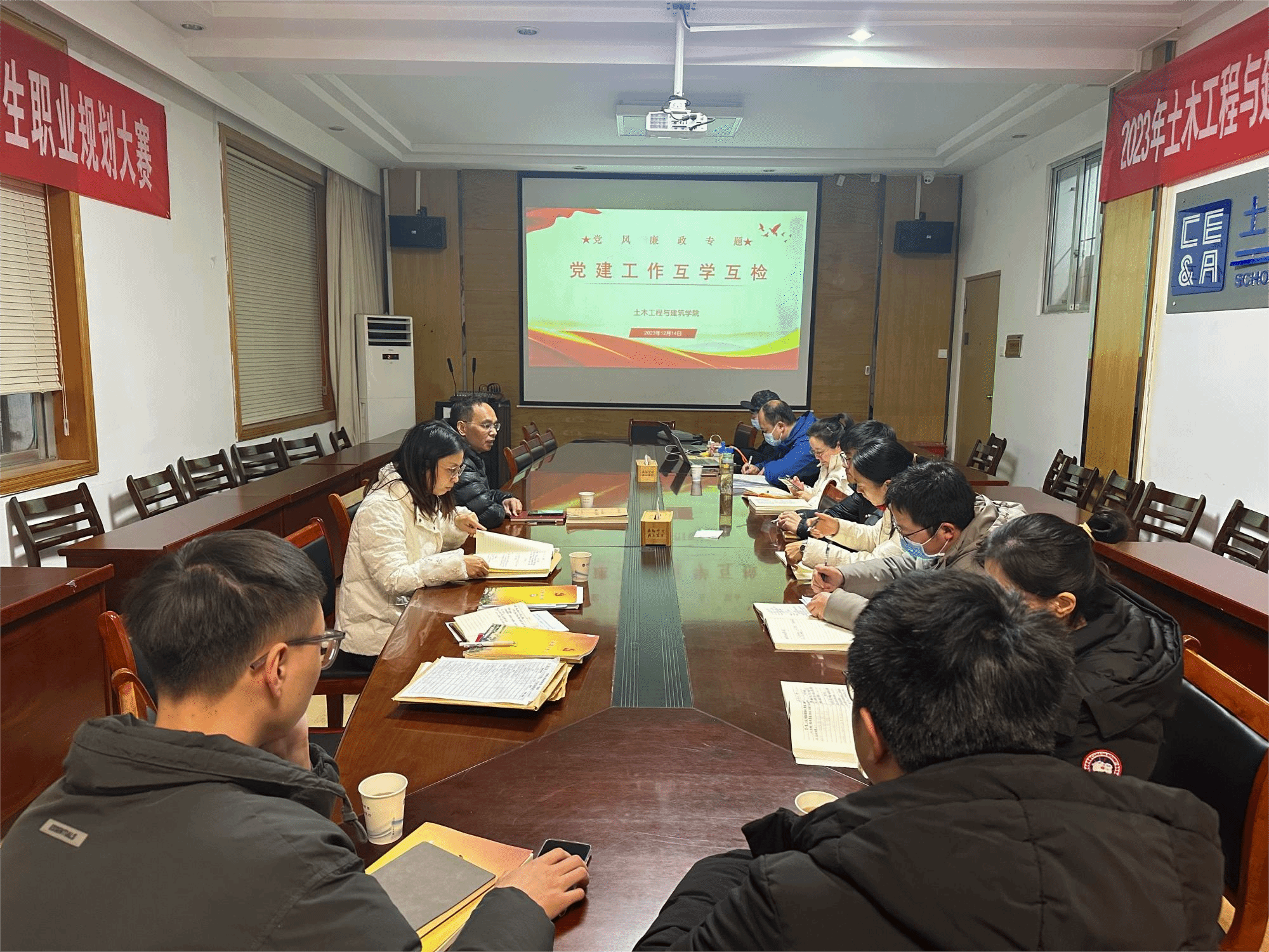 现场通过查阅资料、现场询问、相互点评等方式,对双方党建要点和学习计划落实、党员材料等内容进行了互学互检,并详细记录工作亮点及存在的问题。