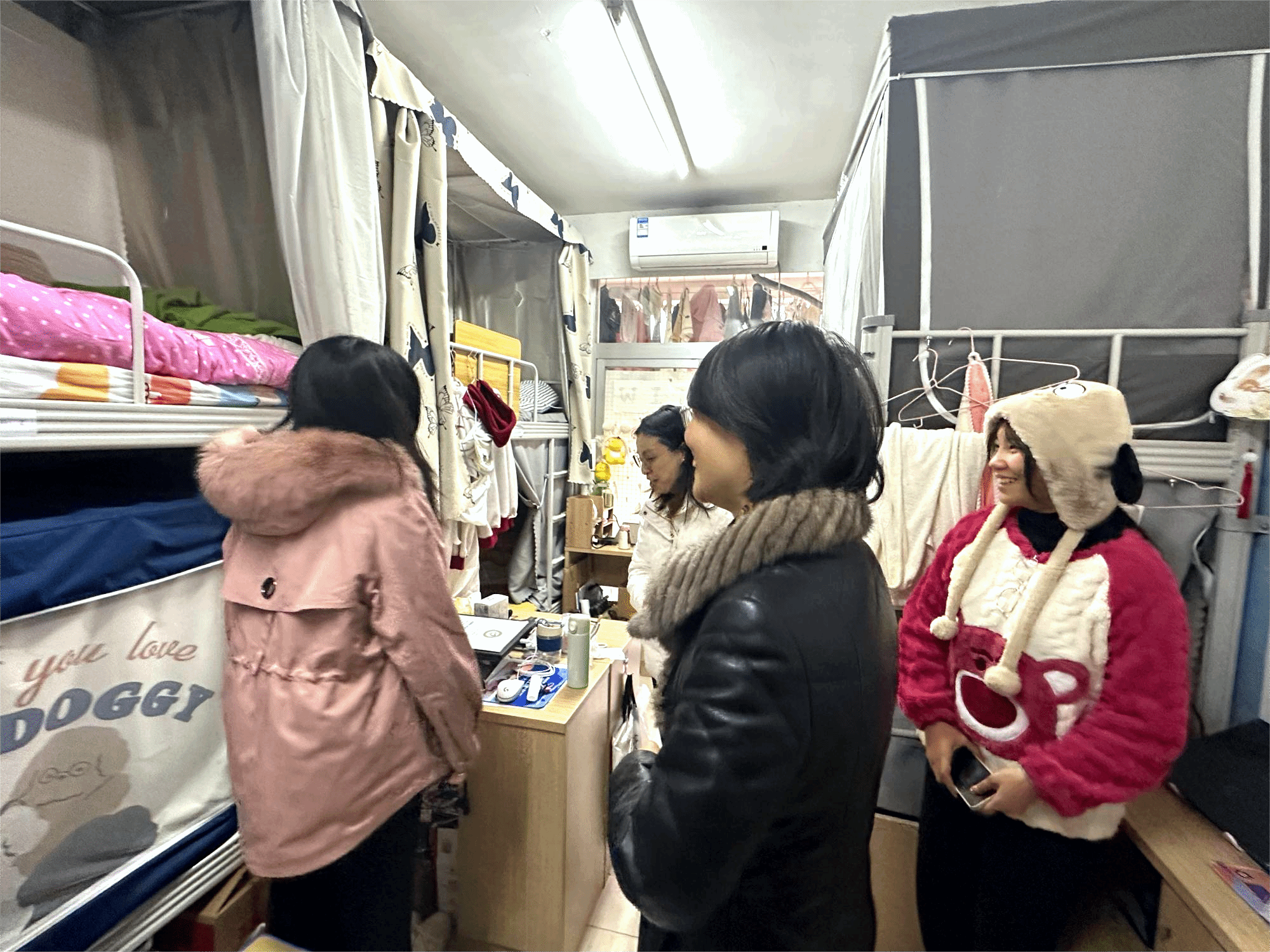 学工部徐迪迪部长和员工亲切交流,关心员工在校生活是否习惯,是否存在困难,对宿舍卫生提出要求,她指出:一是进入冬季,同学们要注意宿舍通风、卫生清理,预防传染病发生,做好日常防护;二是冬季天气寒冷、气候干燥,火灾风险不断增大,同学们要切实提高消防安全意识,抓住重点、认真落实,确保自身的生命财产安全。