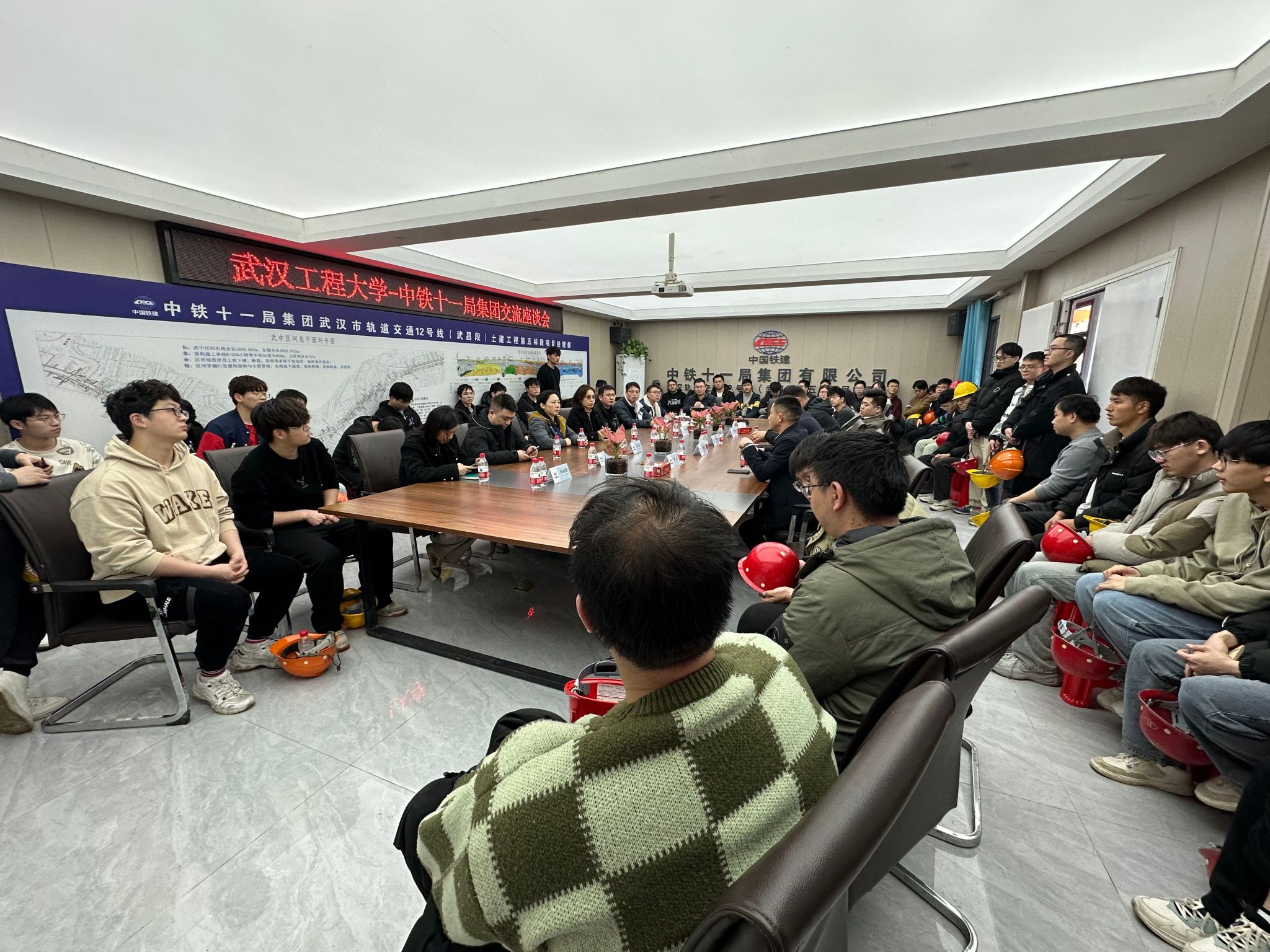 在城轨公司武汉12号线5标项目现场,项目经理蒿昭东、项目书记姜在胜带领公司师生深入项目一线,直观感受重大工程带来的视觉震撼,深刻体会“攻坚克难、勇往直前、团结协作、追求卓越”的盾构精神。