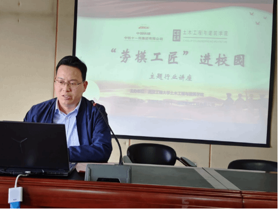 (通讯员:夏添)3月19日下午,best365英国体育在线在武昌校区三教多功能报告厅举办“劳模工匠”进校园主题行业讲座第二期。本次讲座由经理助理边晓亚主持,道桥系教师、公司辅导员与员工代表100余人到场参加。公司特邀中铁十一局集团第四工程有限公司信息监督部部长兼智慧建造研究院执行经理彭新星讲学。