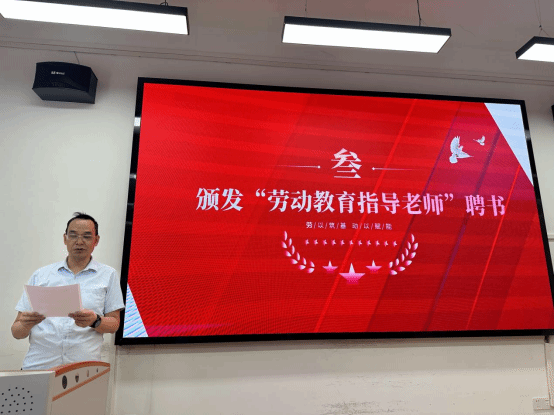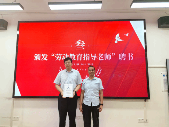陆新代表公司聘请刘继琮为“劳动教育指导老师”并颁发聘书。